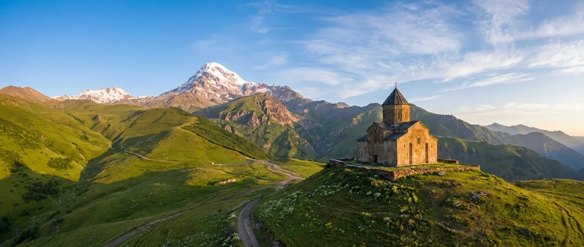 Jours 6 et 7 : Kazbegi. Le clou du voyage. La marshrutka depuis Tbilissi (environ 8 €) emprunte la mythique route militaire géorgienne, l’une des routes les plus spectaculaires du Caucase. À l’arrivée, la randonnée vers l’église de Guerguétie (Gergeti Trinity), perchée à 2 170 mètres face au mont Kazbek (5 033 m), est tout simplement inoubliable. Les plus aventuriers prolongeront vers la vallée de Juta ou les gorges de Truso. Budget transport A/R : 10-16 €.